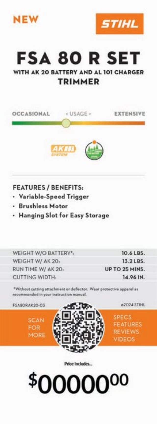 - The FSA 80 R trimmer features a new loop-handle design with quick release so you can easily adjust it to fit your size, no tools necessary. This trimmer offers a virtually maintenance-free experience thanks to the brushless motor and a variable-speed trigger that allows users to optimize performance and run times to get the job done. From power and intelligence to operator comfort, this trimmer gets the job done efficiently.
