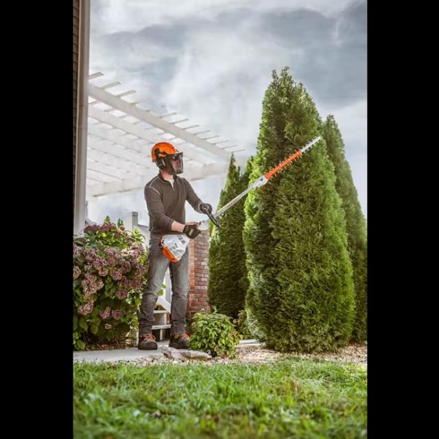- Maintain hard-to-reach hedges with the STIHL HL 56 K (0 ) extended-reach hedge trimmer. Designed for homeowners and beginning landscapers, this gas-powered hedge trimmer has a 26-inch short shaft which makes it easy to handle. With its advanced, low exhaust emission, powerful two-stroke engine, the HL 56 K (0 ) is fuel efficient for a lower cost of ownership over time. It features a lighter gearbox than previous models, shifting weight to the powerhead for better balance and maneuverability. The fixed-angle zero-degree blade allows users to trim hard-to-reach areas smoothly and precisely.